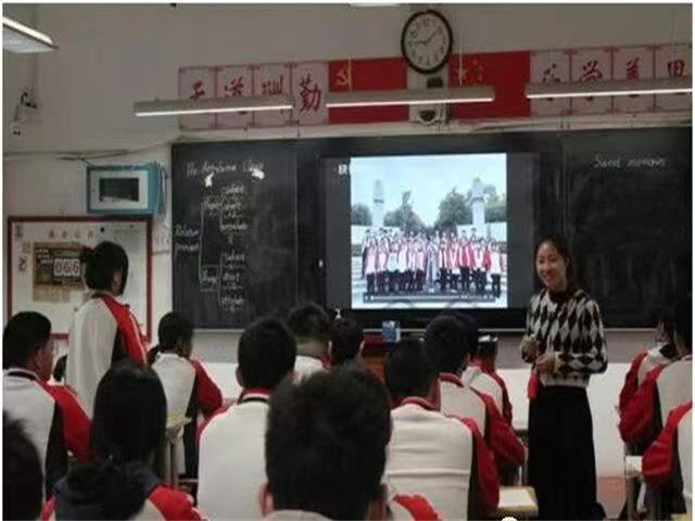 平顶山市第七中学马飞校长授课,围绕定语从句展开教学,以“感知-发现-破解-区别-应用”为核心逻辑设计8个教学环节。采用互动、合作、直接教学法,结合个体、结对、小组活动;借助多媒体教室与黑板辅助教学。马老师的课从“感知”到“应用”的环节设计符合语法学习规律,层层递进,帮助学生逐步掌握知识点;融入小组猜词、结对练习等活动,避免语法课的枯燥感,能有效调动学生参与度;将语法学习与情感教育(如“努力学习”“热爱学校”)结合,兼顾知识传授与价值观引导;家庭照片+定语从句”的任务贴近生活,让学生在真实场景中运用语法,强化学习效果。